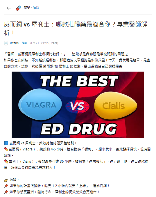 16 6 月 犀利士 犀利士Dcard熱議話題分享:真實使用者的使用心得與使用效果分享 16 6 月, 2025 By 新義安藥局 0 comments 在台灣最大的匿名論壇 Dcard 上,犀利士(Cialis)成為許多男性網友熱烈討論的話題。不論是第一次嘗試的年輕族群,還是追求長效壯陽的熟齡族,大家都在分享自己服用犀利士後的實際效果與感受。本文將深入整理來自 Dcard 的真實用戶回饋,並結合藥物資料與專業醫師建議,... 繼續閱讀