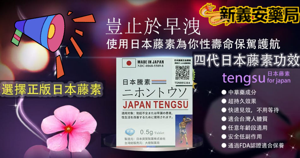 30 5 月 日本藤素 日本藤素使用心得分享:真實使用者回饋與各大論壇網友評價分享 10 6 月, 2025 By 新義安藥局 0 comments 日本藤素是什麼? 日本藤素(JAPAN TENGSU)是一種純天然草本成分組成的男性保健品,專門針對性能力減弱、勃起無力、早洩與腎虛等問題設計。根據日本京都慈賀縣製藥株式會社的說明,日本藤素主打無副作用、無需處方即可購買,讓中年男性找回年輕時的雄風。 👉 延伸閱... 繼續閱讀