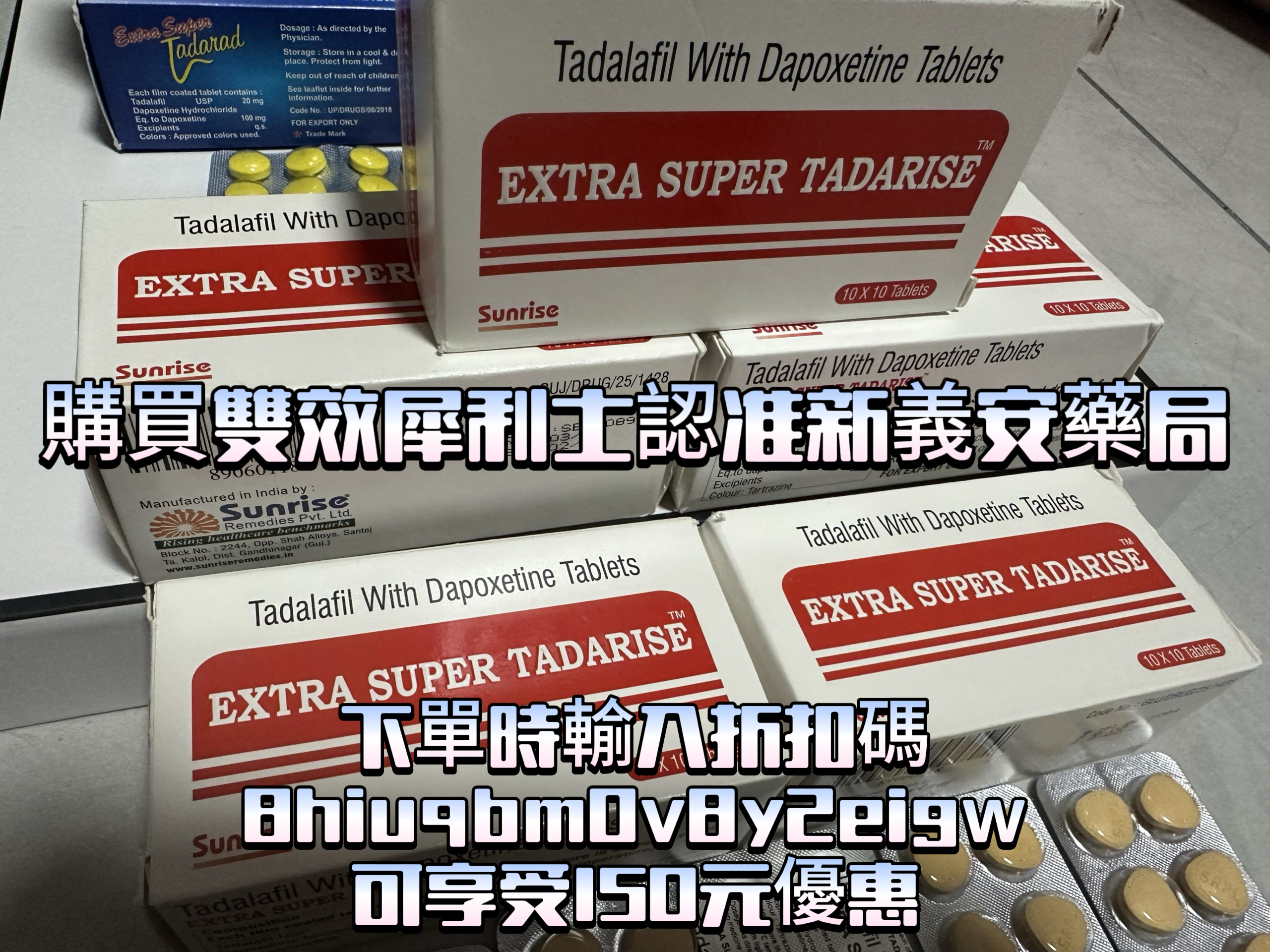 雙效犀利士Super Tadarise是一款含有兩種活性成分的男性口服藥物:40mg他達拉非(Tadalafil)+ 60mg達泊西汀(Dapoxetine)。