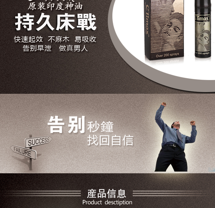| Climax | Lidocaine | 噴霧 | 2~4分鐘 | 中 |