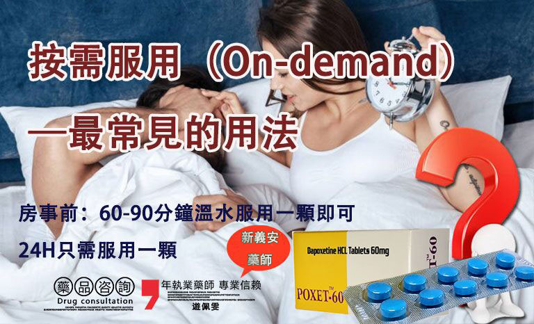 | 中度早洩 | 每週服用2~3次(60mg)持續一個月 | 4~6週後鞏固效果 |