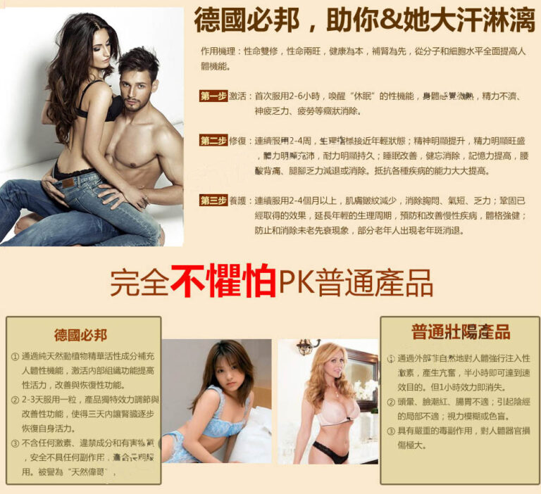| 使用者G | 40歲以上 | 長期使用德國必邦,精力變好,房事頻率明顯提升 |
