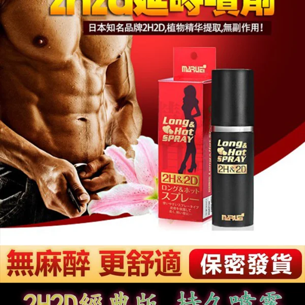 - 延長性愛時間 2h2d 黑金版 延時噴霧 通過降低陰莖敏感度,顯著延遲射精時間。這款產品能幫助您在性愛過程中保持更長時間的持久力,讓您和伴侶享受更加充實和持久的親密接觸。