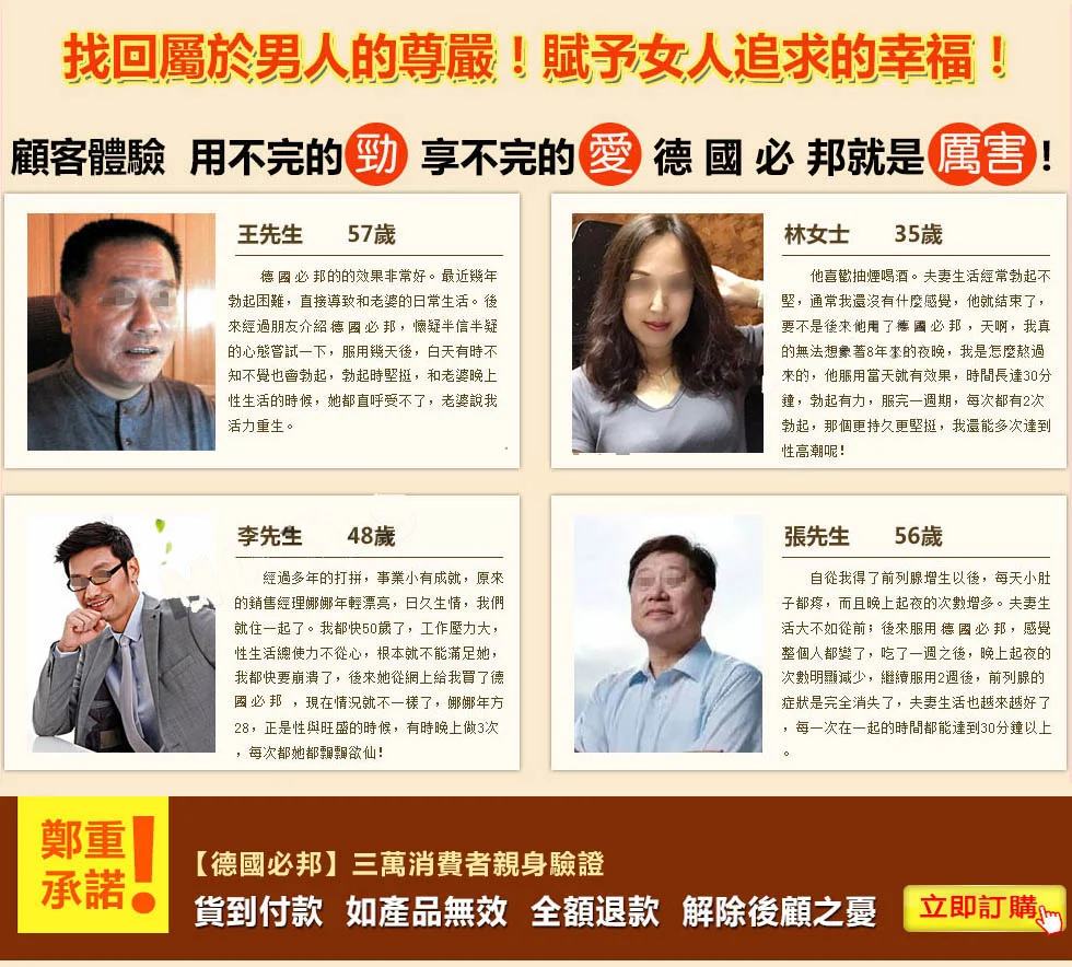「自從開始使用德國必邦後,我的勃起問題得到了顯著改善,我和我的伴侶都對這個產品的效果感到非常滿意。」——李先生,42歲