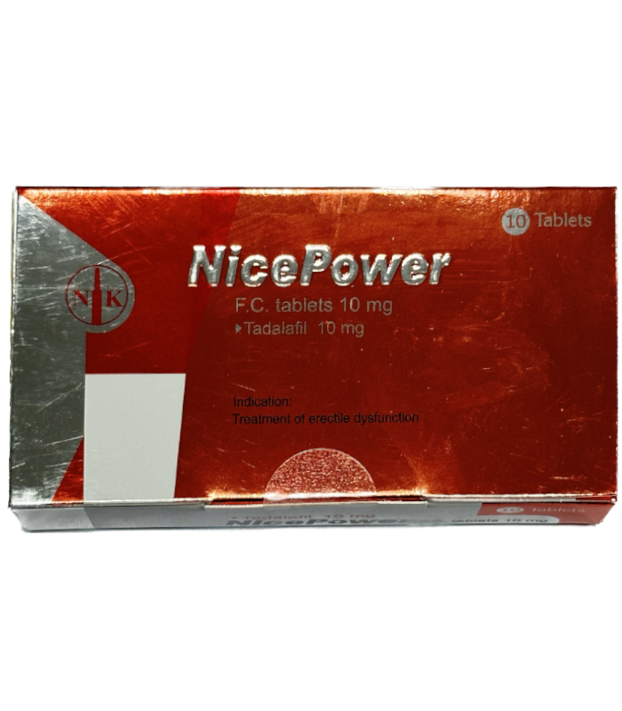 - 每盒含 10 錠 健力仕膜衣錠 NicePower 10mg,每錠含 10mg Tadalafil。