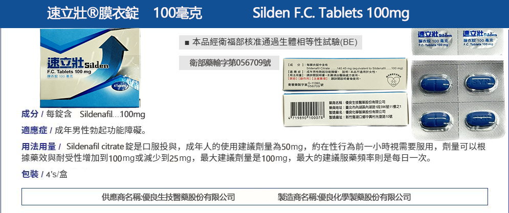 速立壯®膜衣錠 Silden 100mg|健喬(1盒4錠)Sildenafil、助勃堅挺 共有 76 則評價