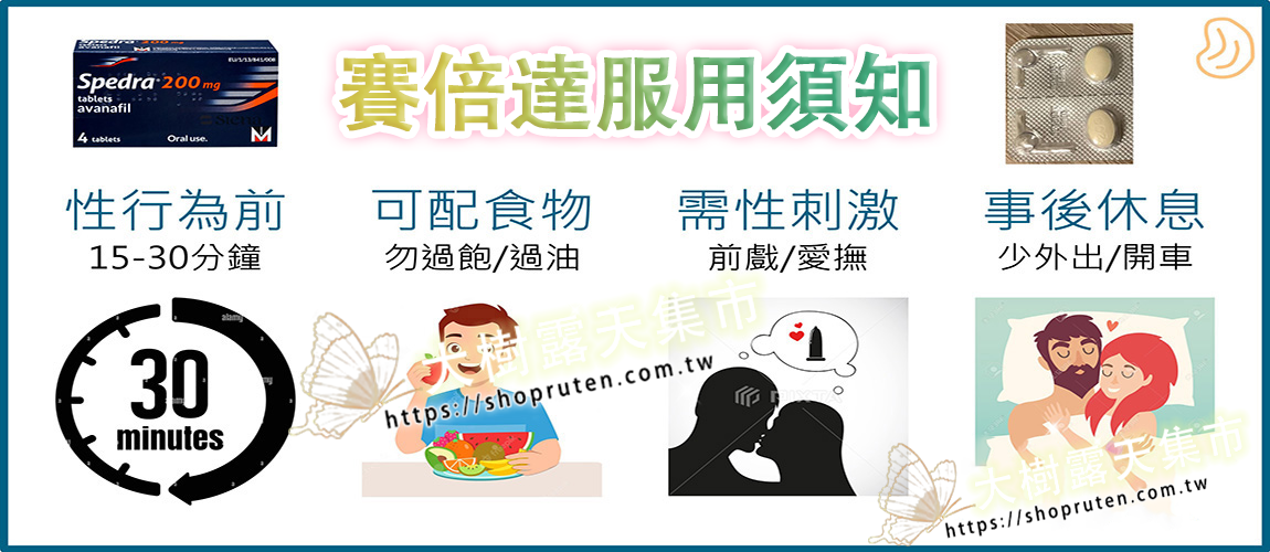建議在性生活前約 15 至 30 分鐘內服用 Spedra 200mg,使用 300ml 溫水送服,空腹或飯後均可。避免與高脂肪食物同時服用,這可能會延遲藥物的吸收,減緩起效時間。每日最多服用一次。 - 副作用: