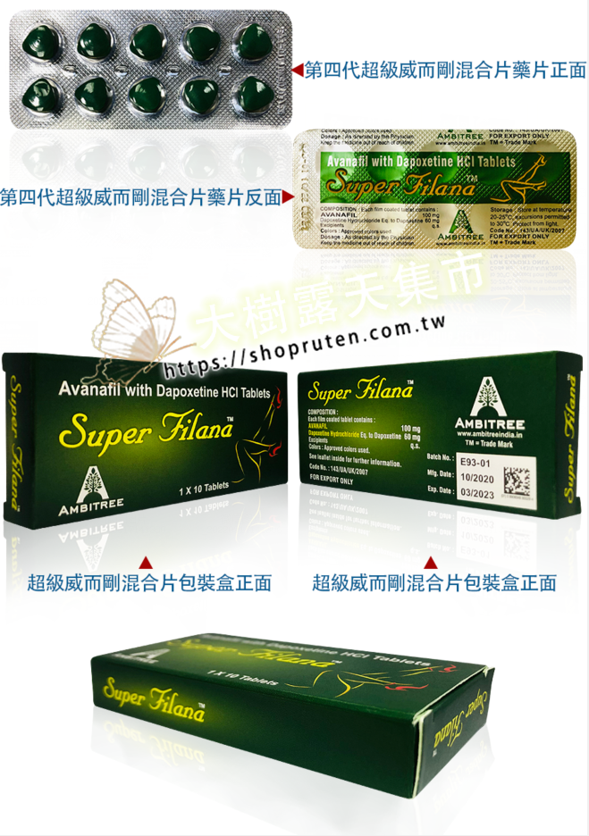 Super Filana 綠水鬼,是 Ambitree 藥廠推出的最新一代壯陽雙效產品。它結合了 Avanafil(阿伐那非)和 Dapoxetine(必利勁),這兩種成分具有助勃和延時的雙重作用,特別適合勃起困難和早洩的男性使用。Super Filana 綠水鬼不僅效果快速,吸收迅速,而且副作用極低。這款產品自上市以來,已迅速成為市場上最受歡迎的雙效壯陽產品之一,其效果穩定且性價比極高。