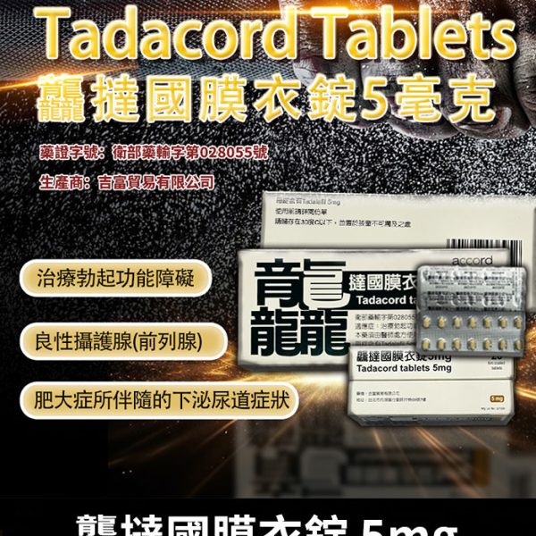 龘撻國膜衣錠 Tadacord 20mg 是針對男性勃起功能障礙(ED)的單效強效助勃藥物,專為需要強效助勃效果的男性設計。其主要成分為Tadalafil,能有效促進陰莖血流,幫助在性刺激下達到並維持堅硬的勃起。此藥物不僅能迅速發揮作用,還能保持持久效果,適合需要快速改善勃起功能的男性使用。