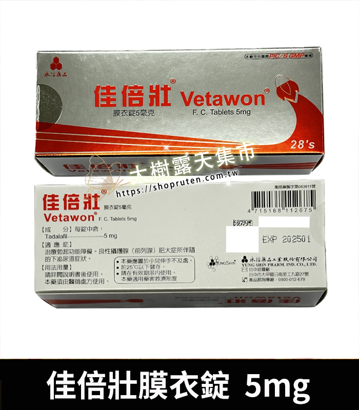 佳倍壯膜衣錠 Vetawon 5mg 是專門用於治療男性勃起功能障礙(ED)的每日低劑量藥物,其主要成分與犀利士(Cialis)5mg相同,屬於學名藥。該藥物能通過促進陰莖血液流動,幫助男性在性刺激下達到並維持堅硬的勃起。Vetawon 5mg 適合需要長期穩定改善勃起能力的男性使用,讓您隨時隨地展現最佳性愛狀態,無需臨時準備,增強性生活的持久力和質量。