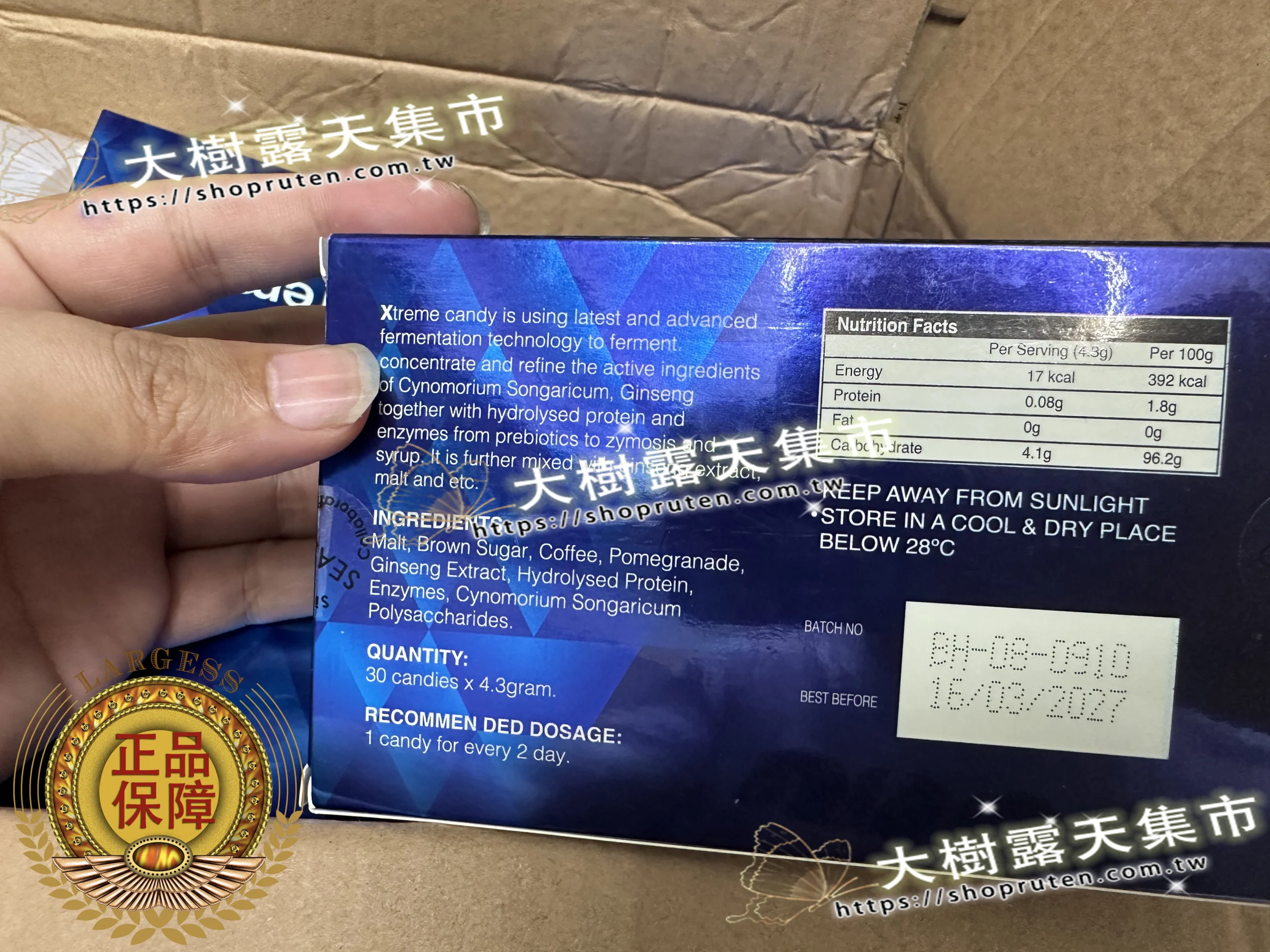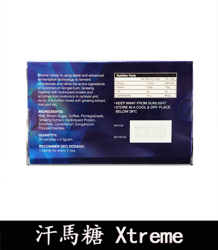 悍馬糖(Xtreme)藍糖是馬來西亞進口產品,只有官方授權才能購買正品。台灣實體藥局無法正常銷售,購買通路如下: